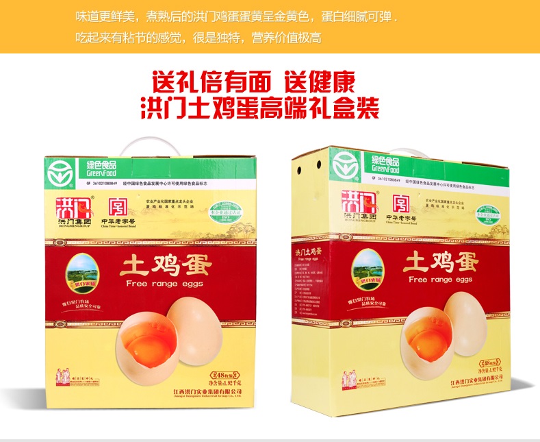 洪门实业集团在洪门湖周山建立专门建立土鸡自然放养区,以稻谷、虫草等天然食物为食,远离城市,所产的“洪门”土鸡蛋富含卵磷脂、钙锌微量元素、低胆固醇、口感好。