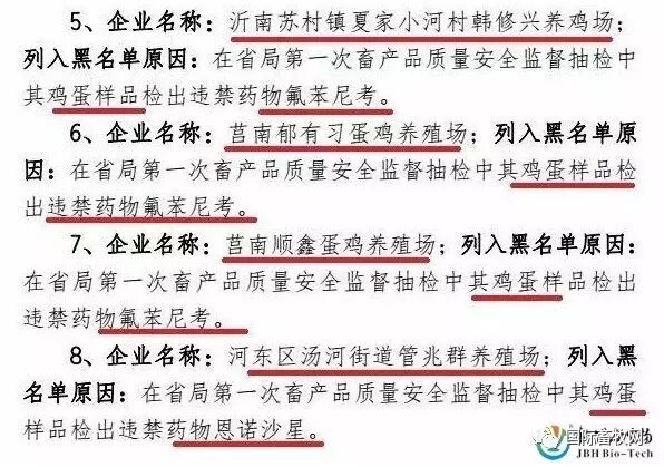 山东临沂8家企业鸡蛋检出违禁抗生素