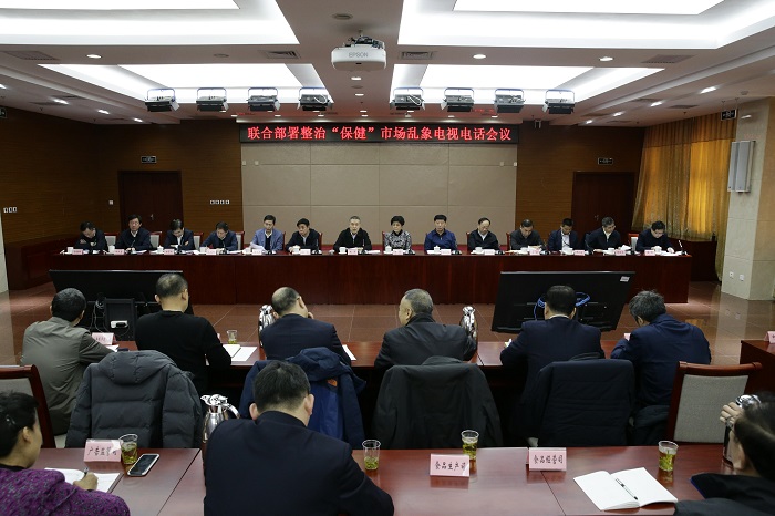 1月8日,多部门联合部署整治“保健”市场乱象百日行动电视电话会议在京召开。市场监管总局局长张茅出席会议并讲话。总局副局长甘霖主持会议。工业和信息化部、公安部、民政部、住房城乡建设部、农业农村部、商务部、文化和旅游部、卫生健康委、广电总局、网信办有关负责同志在会上就本系统开展“百日行动”作了部署。