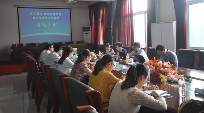 二〇一五年九月十八日,山东省质量技术监督局评审验收专家组来到潍坊,就金年会app手机版在线登录实验室资质认定(CMA(F))进行现场评审,公司领导刘清亮、姜利成等同志陪同专家组进行了评审。