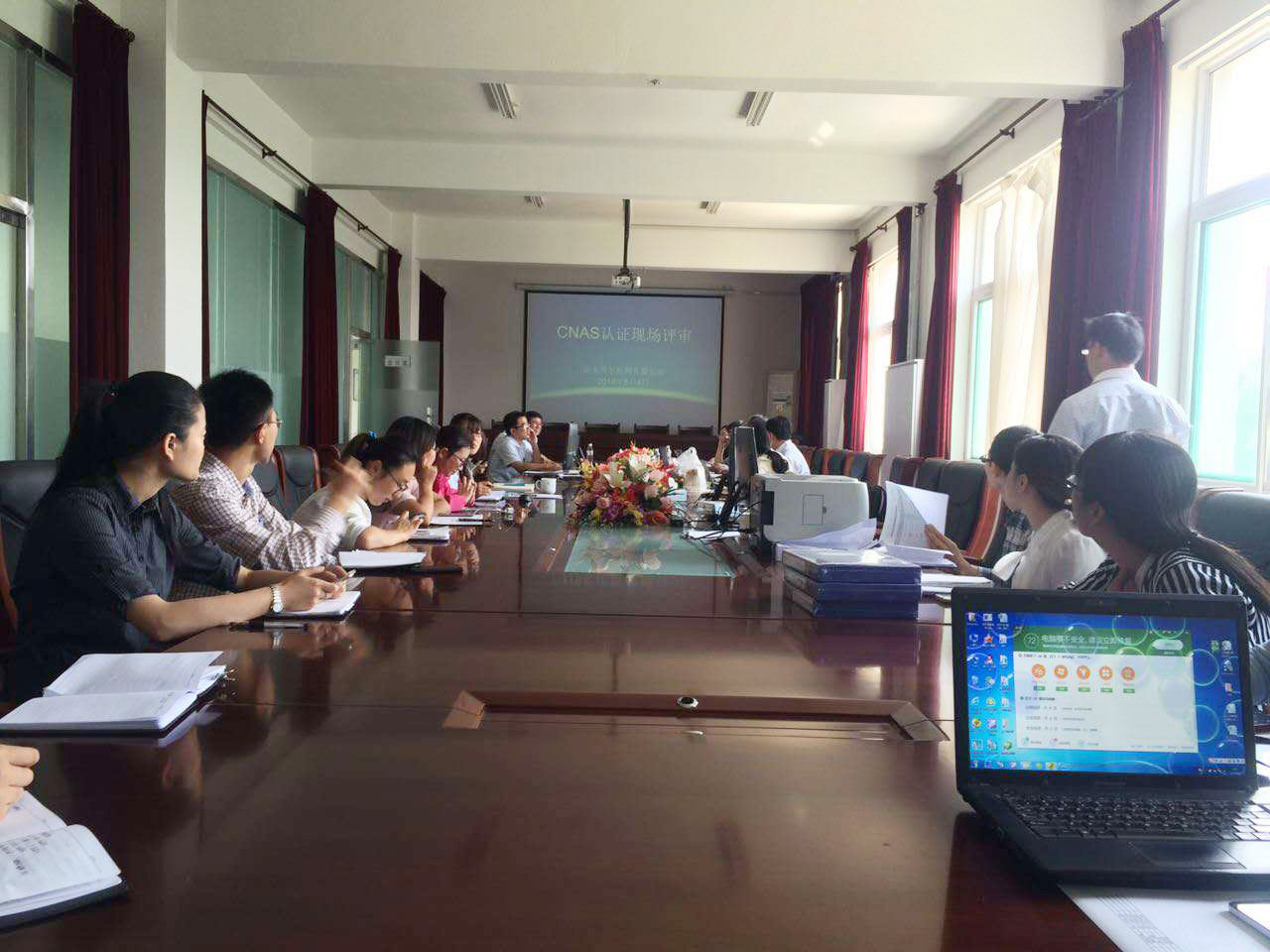 二〇一六年六月四日,中国合格评定国家认可委员会评审验收专家组来到潍坊,就金年会app手机版在线登录CNAS进行现场评审,公司领导刘清亮、姜利成等同志陪同专家组进行了评审。